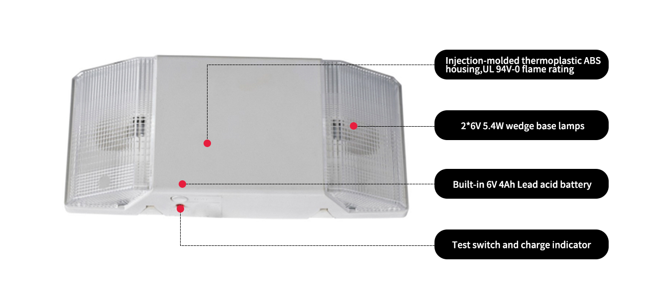 Acasă / Produs / Lumina de urgență / Lumina de urgență cu cap dublu / JEU4 2X5.4W LAMP FIXT LAMP Lumina de urgență