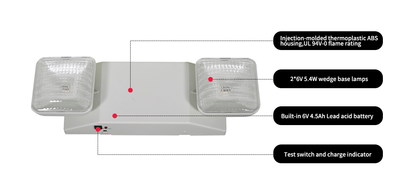 Acasă / Produs / Lumina de urgență / Lumina de urgență cu cap dublu / JEU1 2X5.4W Lampa de urgență incandescentă