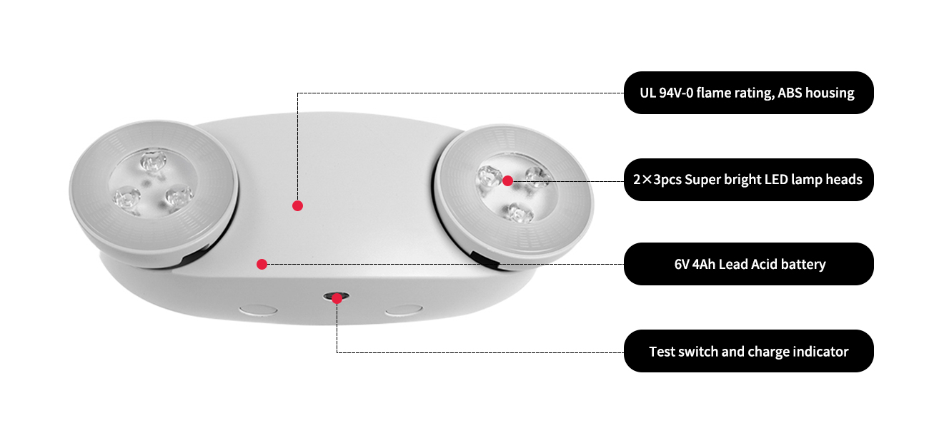 Acasă / Produs / Lumina de urgență / Lumina de urgență cu cap dublu / Jleu6 UL/Cul 600lm High Output Dual Cap Light de urgență