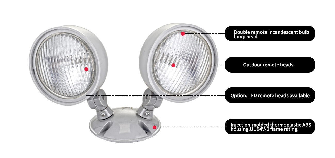 Acasă / Produs / Lumina de urgență / Cap de la distanță LED de urgență de urgență / JRHWP-2-Outdoor Dublu Remote Incandescent Bulb Capete
